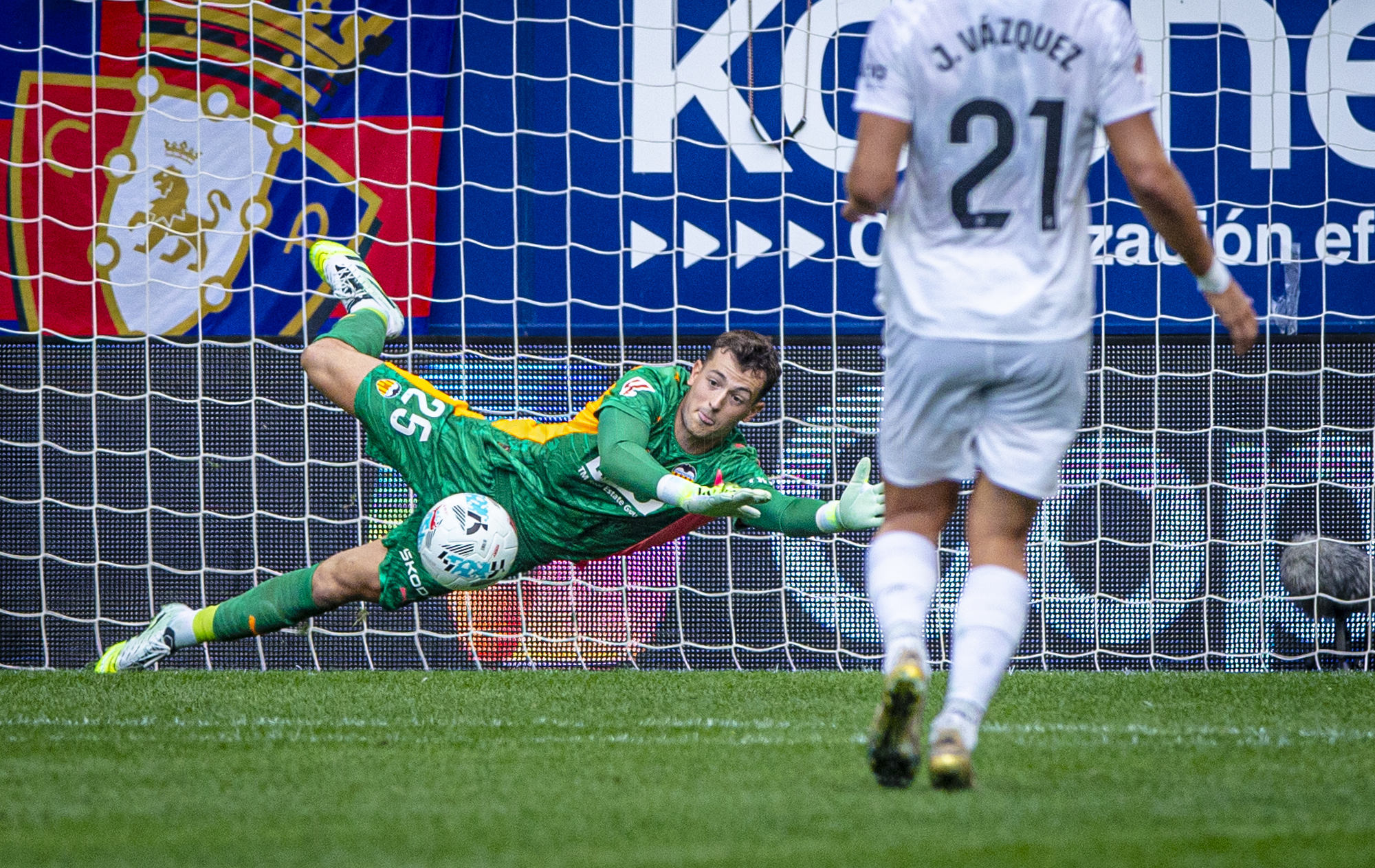 The home side continued to insist in attack, creating several chances close to Julen Agirrezabala's goal. From one of them, the Valencia CF goalkeeper kept out a dangerous shot from Moi Gómez.