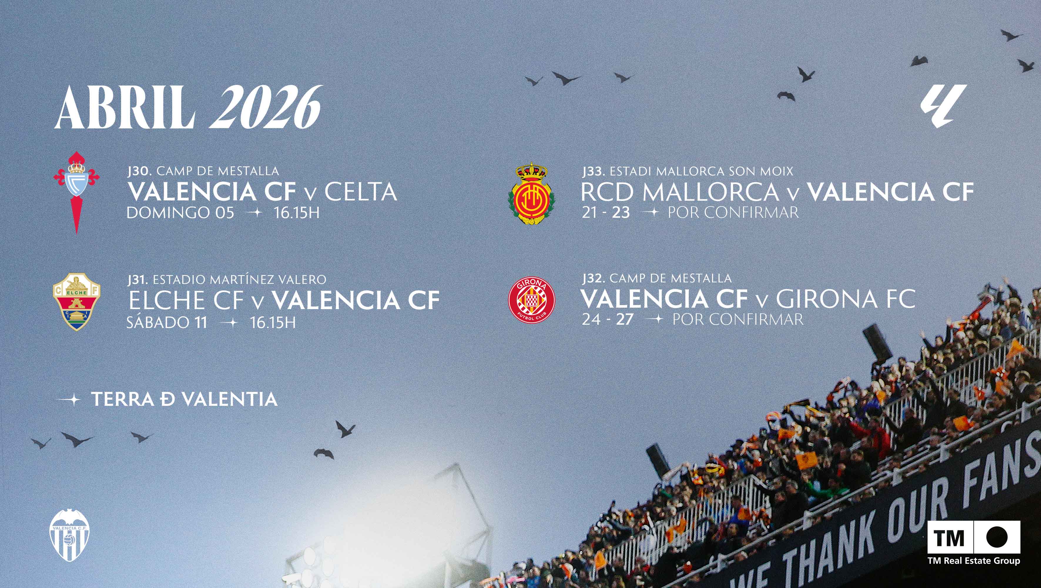 El Valencia CF ya se prepara para disputar las próximas jornadas de LALIGA EA SPORTS 25-26 en este último tramo de la temporada. Conoce aquí todo el calendario de este mes de abril: