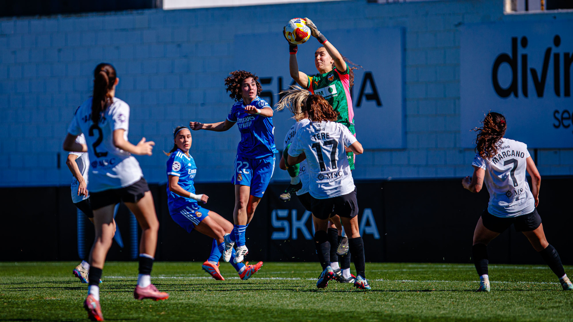 El choque entraba en una fase de disputa sin tregua, con las valencianistas metiendo en su área a las madridistas.