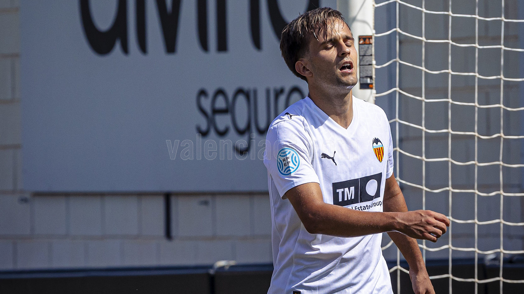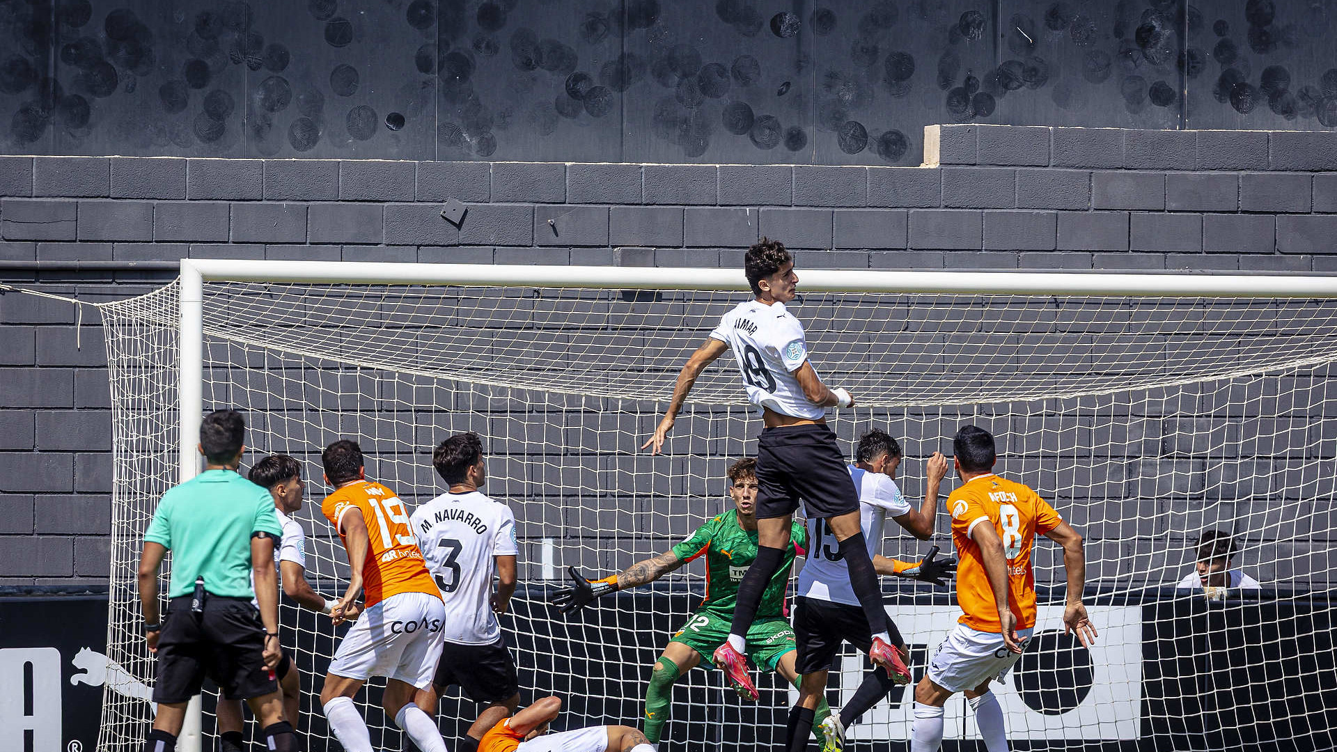 Eran momentos de asedio del VCF Mestalla que tuvo otra ocasión clarísima en un pase en profundidad de Lucas que quedó franco para Aimar que lanzó por encima del larguero.