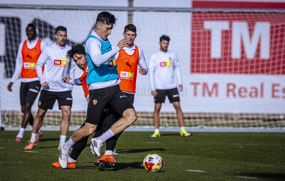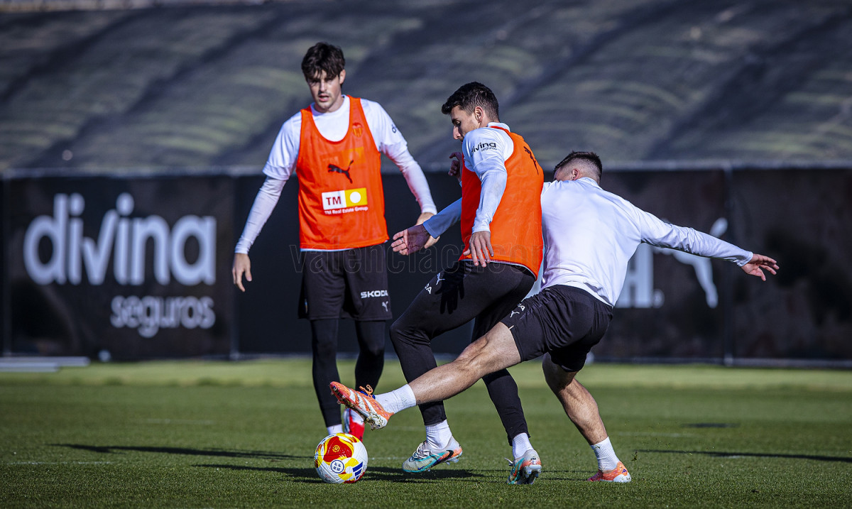 El equipo que dirige Carlos Corberán se ha ejercitado en la Ciutat Esportiva de Paterna con la mente puesta en los dos partidos que disputará en esta mitad del mes de enero.