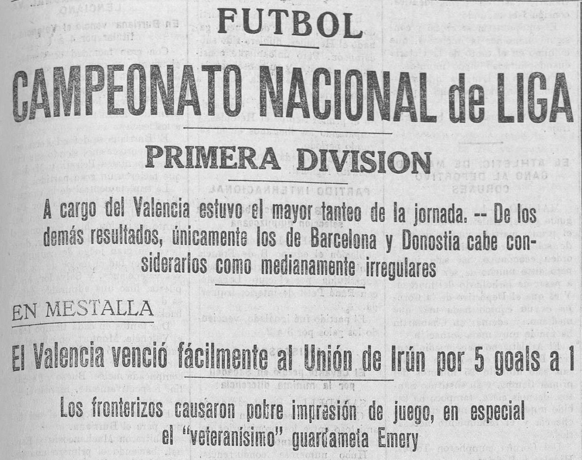 El primer enfrontament del combinat valencianista a Primera Divisió va ser el 22 de novembre de 1931 a Sarrià davant el RCD Espanyol; una setmana després, va jugar el seu primer partit en Primera al Camp de Mestalla contra el Real Irun.