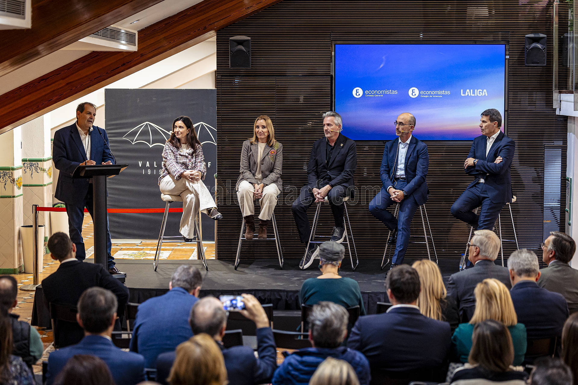 A la llotja VIP del Camp de Mestalla s'ha celebrat una jornada titulada “Sostenibilitat i reporte empresarial: reptes i oportunitats”, que ha sigut organitzada per LALIGA, el Consell General d'Economistes d'Espanya (CGE) i el Col·legi d'Economistes de València, i en la qual s'han abordat els principals desafiaments i avanços en matèria de normativa sobre informació de sostenibilitat (ESG) i reporte no financer, tant per a empreses en general com clubs de futbol en particular.