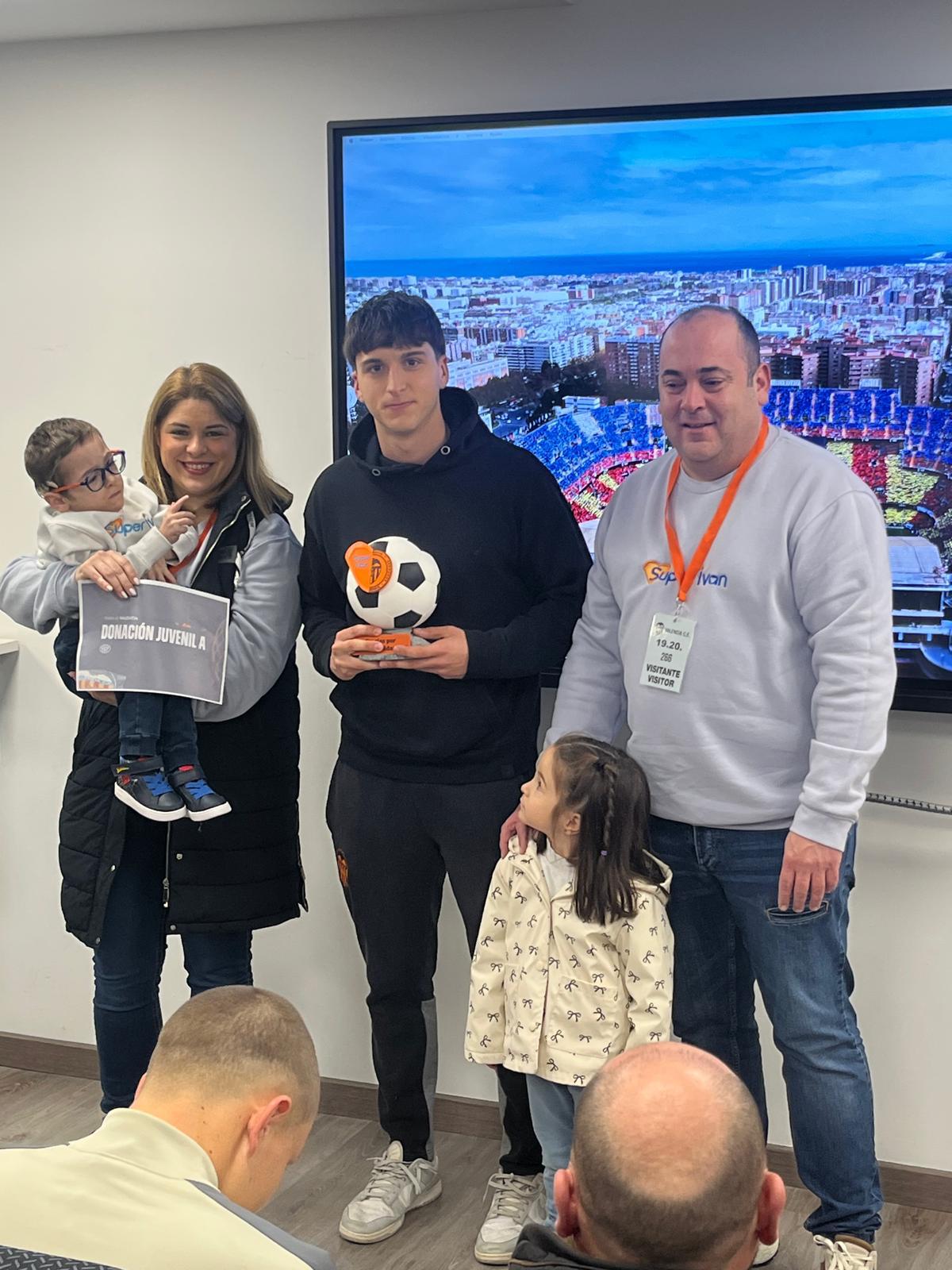 El pequeño Iván, junto a su familia, se acercó a la Ciutat Esportiva del Valencia CF para compartir su experiencia con la plantilla del VCF Juvenil A que a través de su capitán Rubén Martínez hizo entrega de la cantidad acumulada con las multas de equipo por pequeños retrasos e incumplimientos.