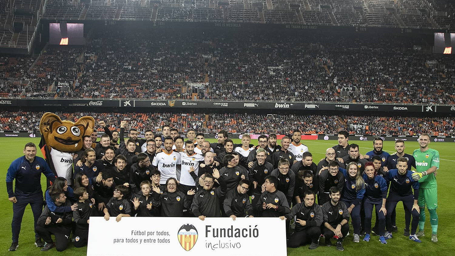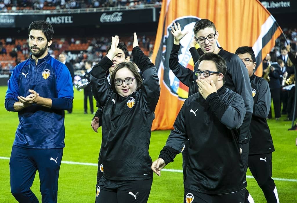 The close to 60 members of the VCF Inclusivo project received an ovation from the fans at Mestalla, when they took to the pitch ahead of the game between Valencia CF and Sevilla CF.