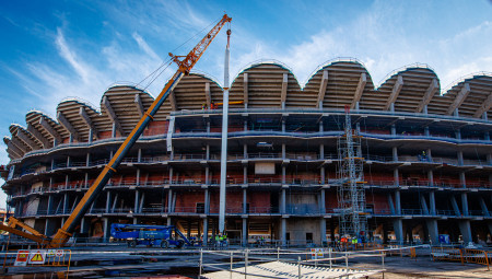 The Nou Mestalla begins installing the exterior pillars that will support the roof