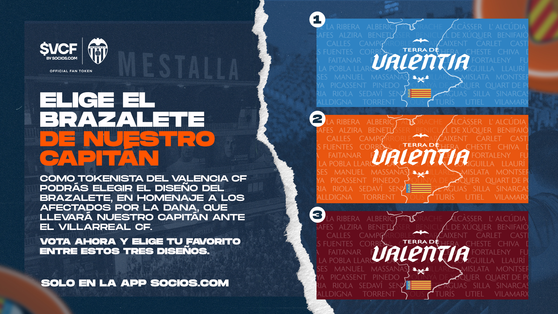 The Valencia CF captain will wear a special armband, the design of which will be chosen by fans holding $VCF Fan Tokens from three possible options. Voting is ongoing-don’t wait any longer and vote for your favorite armband! To access the survey, CLICK HERE.