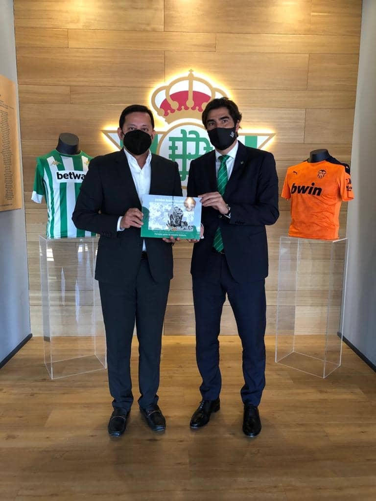 El Real Betis, mediante su presidente Ángel Haro, ha hecho entrega de una fotografía institucional conmemorativa al presidente Anil Murthy durante el partido disputado este domingo en el estadio Benito Villamarín.