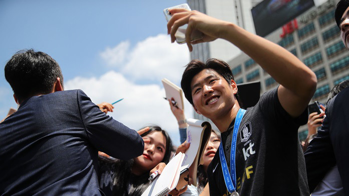 La terminal del aeropuerto internacional de Incheon se llenó, coreando uno a uno los nombres de los futbolistas conforme iban apareciendo. De ahí se dirigieron al ayuntamiento de Seúl, donde comprobaron la ilusión de los aficionados por las calles antes de la ceremonia de bienvenida.