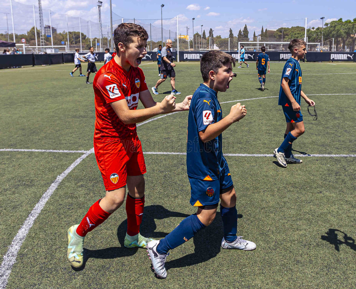 Dos goles le dieron la victoria a Escoles VCF, un combinado de jugadores seleccionado entre las 46 escuelas conveniadas con el Valencia CF, que mostró la identidad de juego y metodología de la Academia VCF, la cuarta mejor de Europa en la formación de jugadores para competir en la élite.