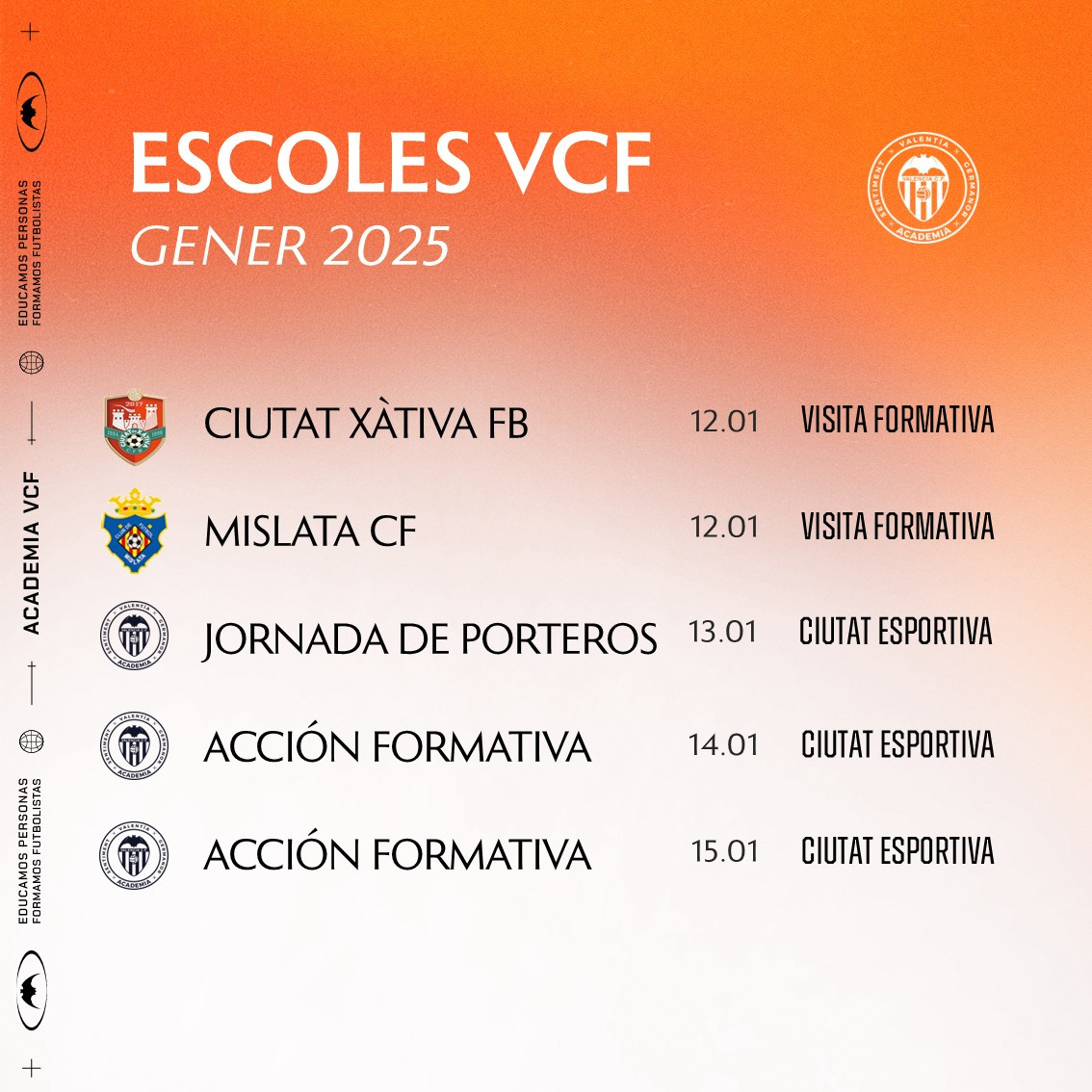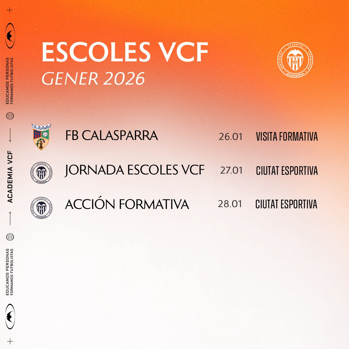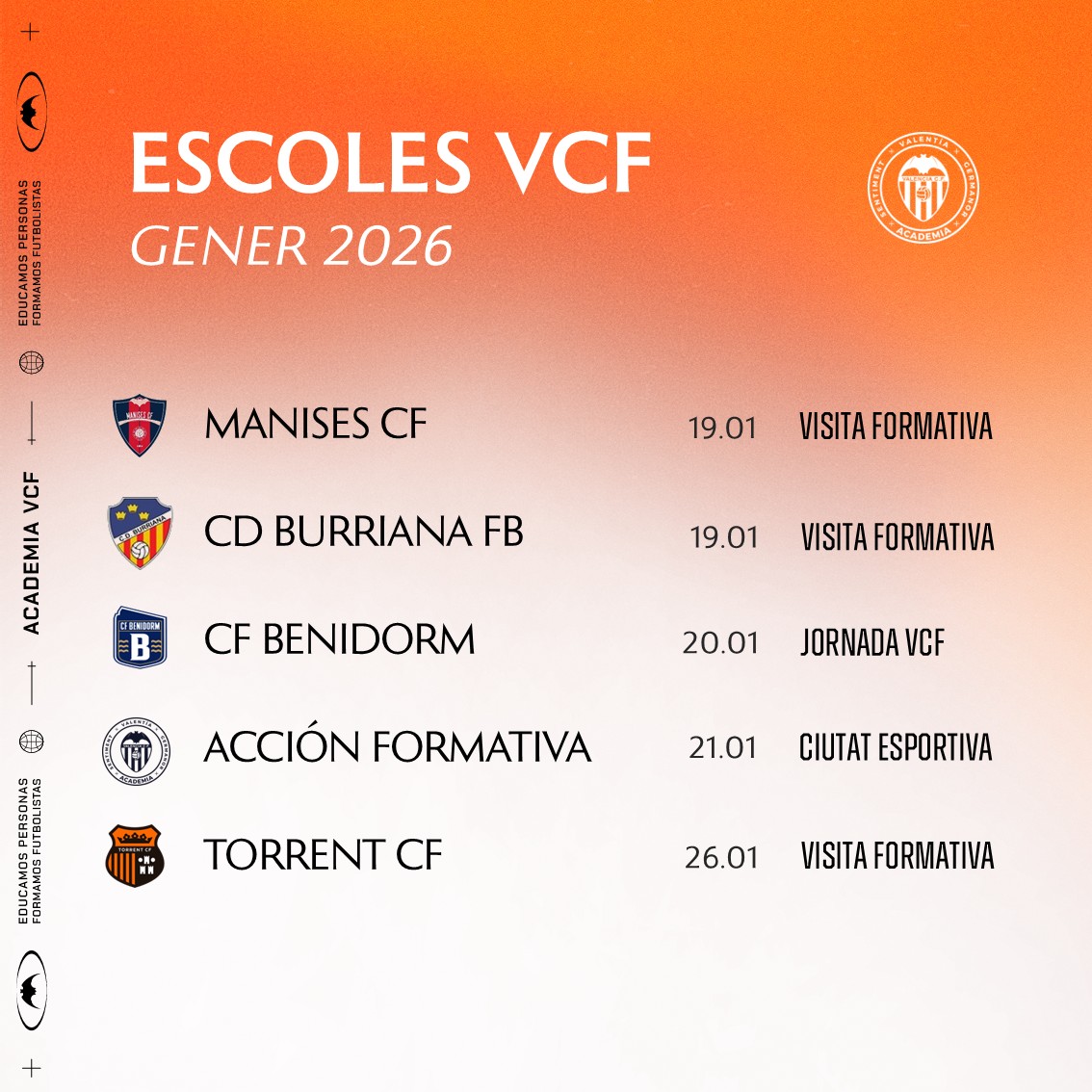 Consulta ací les activitats programades este mes de gener amb els clubs conveniats amb el Valencia CF