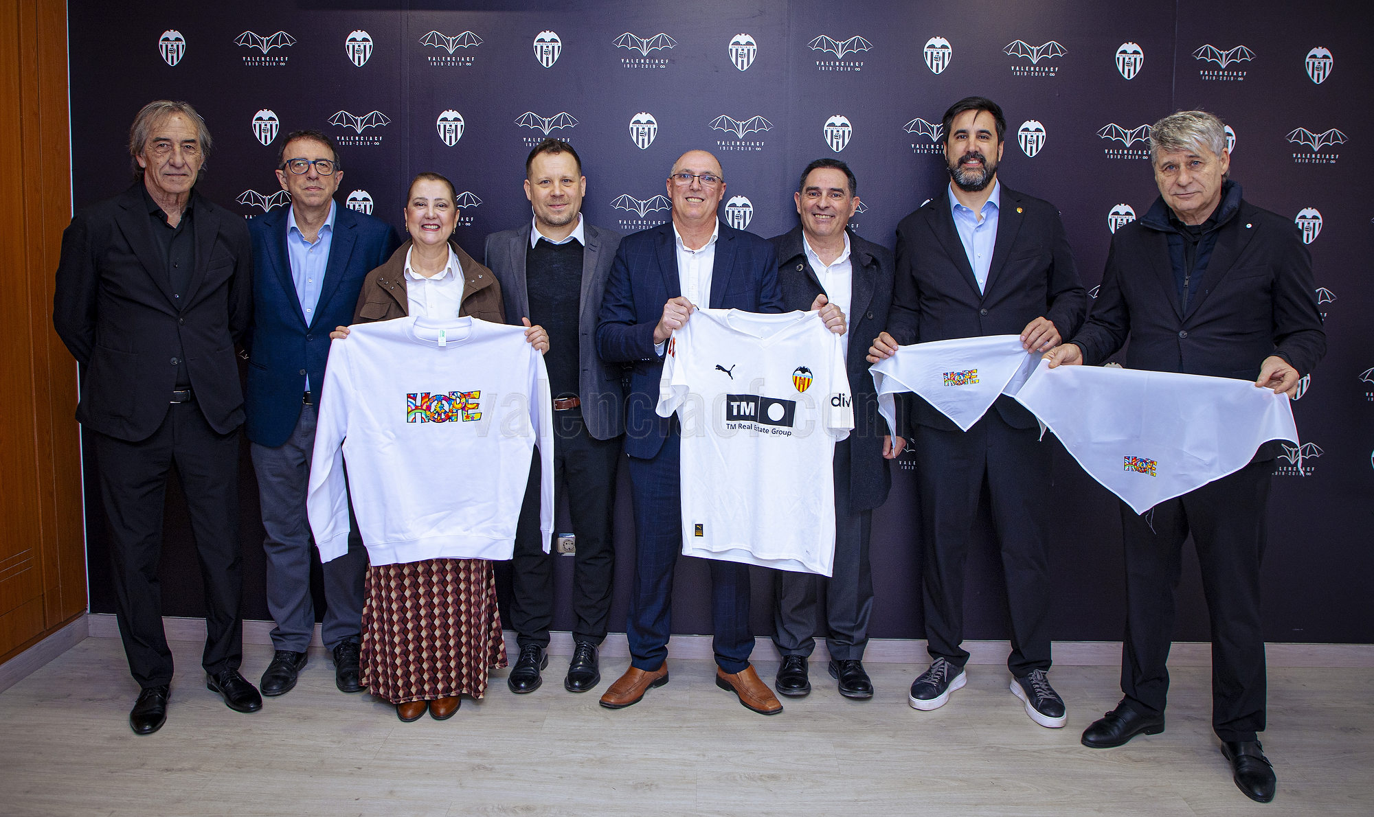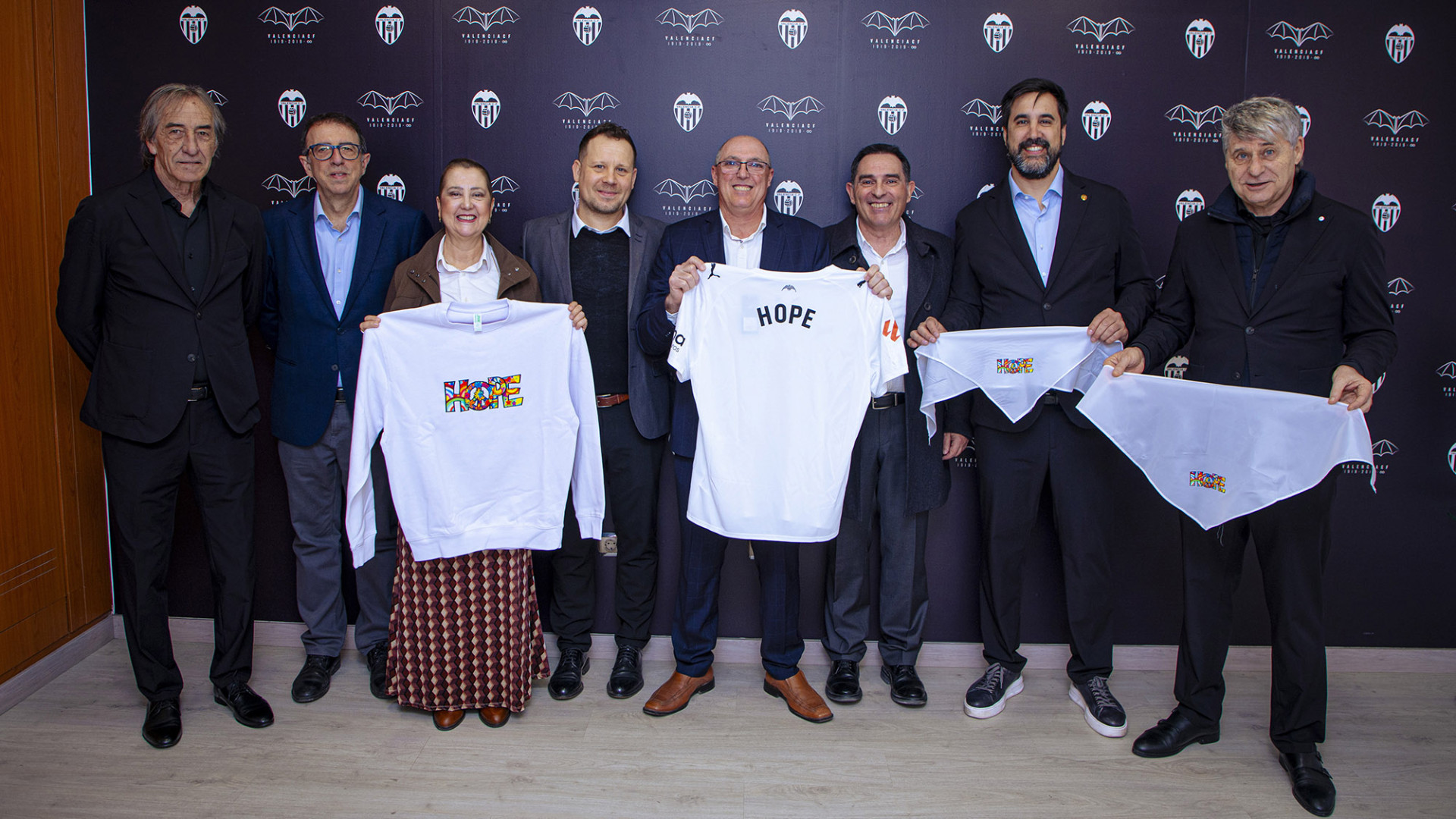 Una representación institucional del Valencia CF y la Fundació VCF recibió el domingo 1 de marzo en el Camp de Mestalla, con motivo del Valencia CF-CA Osasuna, a los artistas falleros Alejandro Santaeulalia y Vicente LLácer (Art Factory), artesanos responsables de la Falla Municipal 2026, que este año se levanta bajo el lema 'HOPE' ('Esperanza').