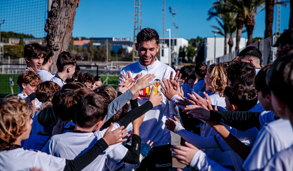 El Campus de Navidad del Valencia CF está ofreciendo experiencias inolvidables a sus participantes y una de ellas ha tenido a Hugo Duro como gran protagonista. El atacante madrileño no ha dejado pasar la oportunidad de acercarse a los campos de Fútbol-8 en los que se está llevando a cabo la actividad y allí lo han recibido con ilusión, cariño y admiración los 120 niñ@s participantes.