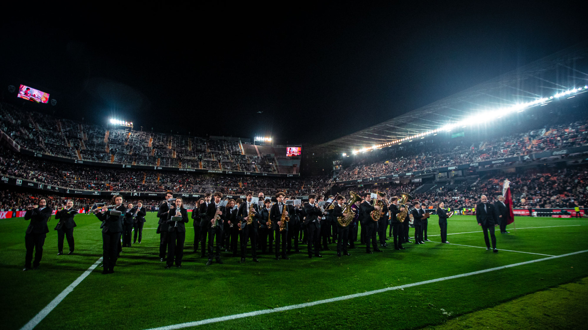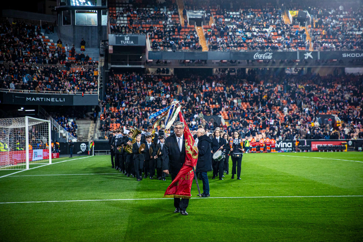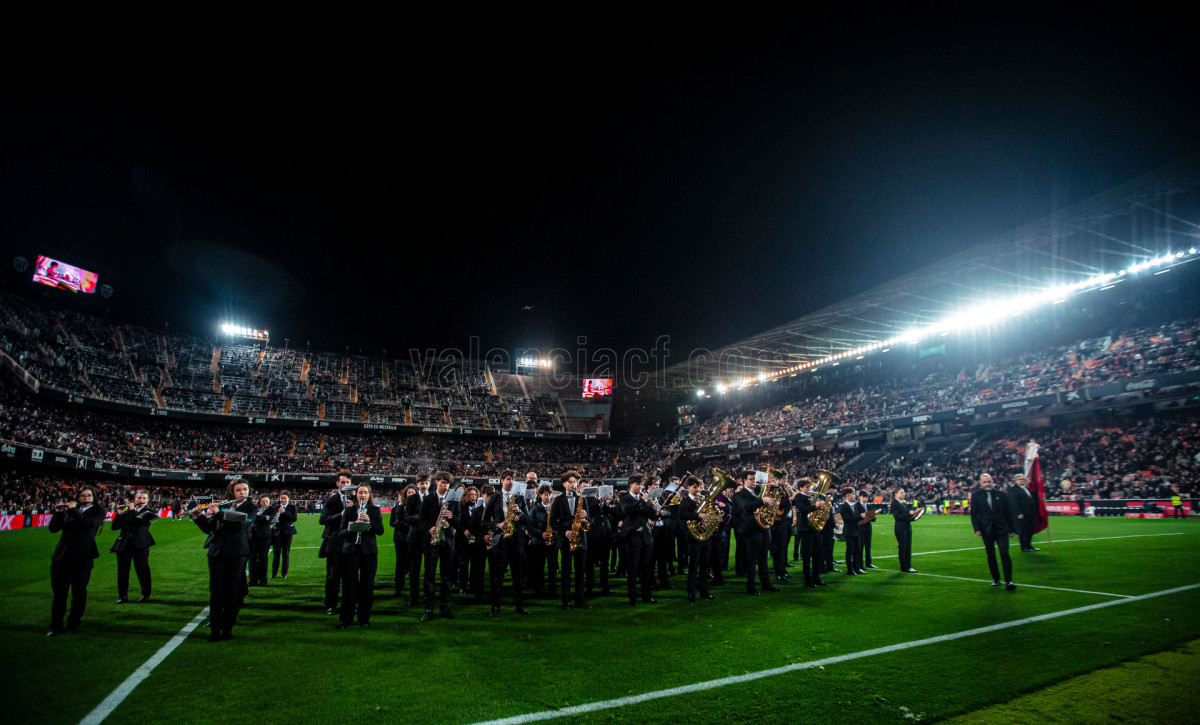 Este miércoles, con motivo del partido Valencia CF – Athletic Club de los cuartos de final de la Copa de SM el Rey 2025-26, nos ha visita en el Camp de Mestalla la banda de la Unió Musical l’Horta de San Marcel·lí de Valencia.