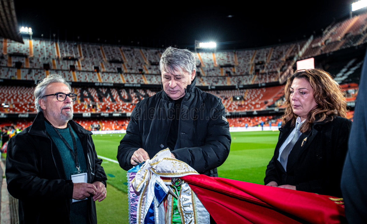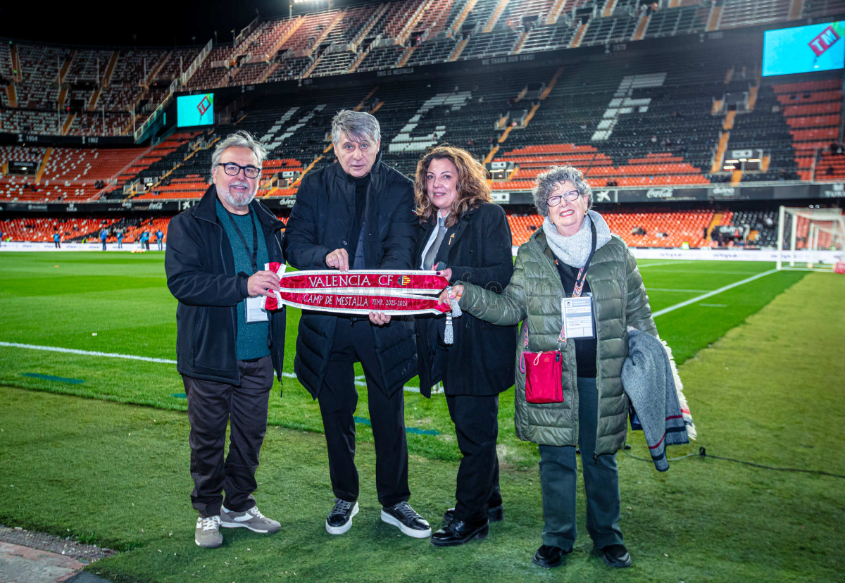 En su visita al estadio valencianista, la Unió Musical l’Horta de San Marcel·lí ha interpretado los pasodobles José Antonio “El Sabina”, Segrelles, Quelo, Azcárraga, Alfara de Algimia y el himno del club Amunt Valencia.