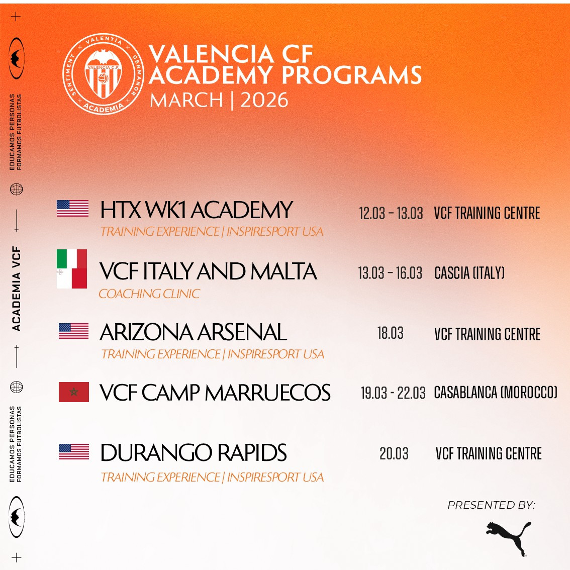 MARZO 2026 | VALENCIA CF ACADEMY PROGRAMS