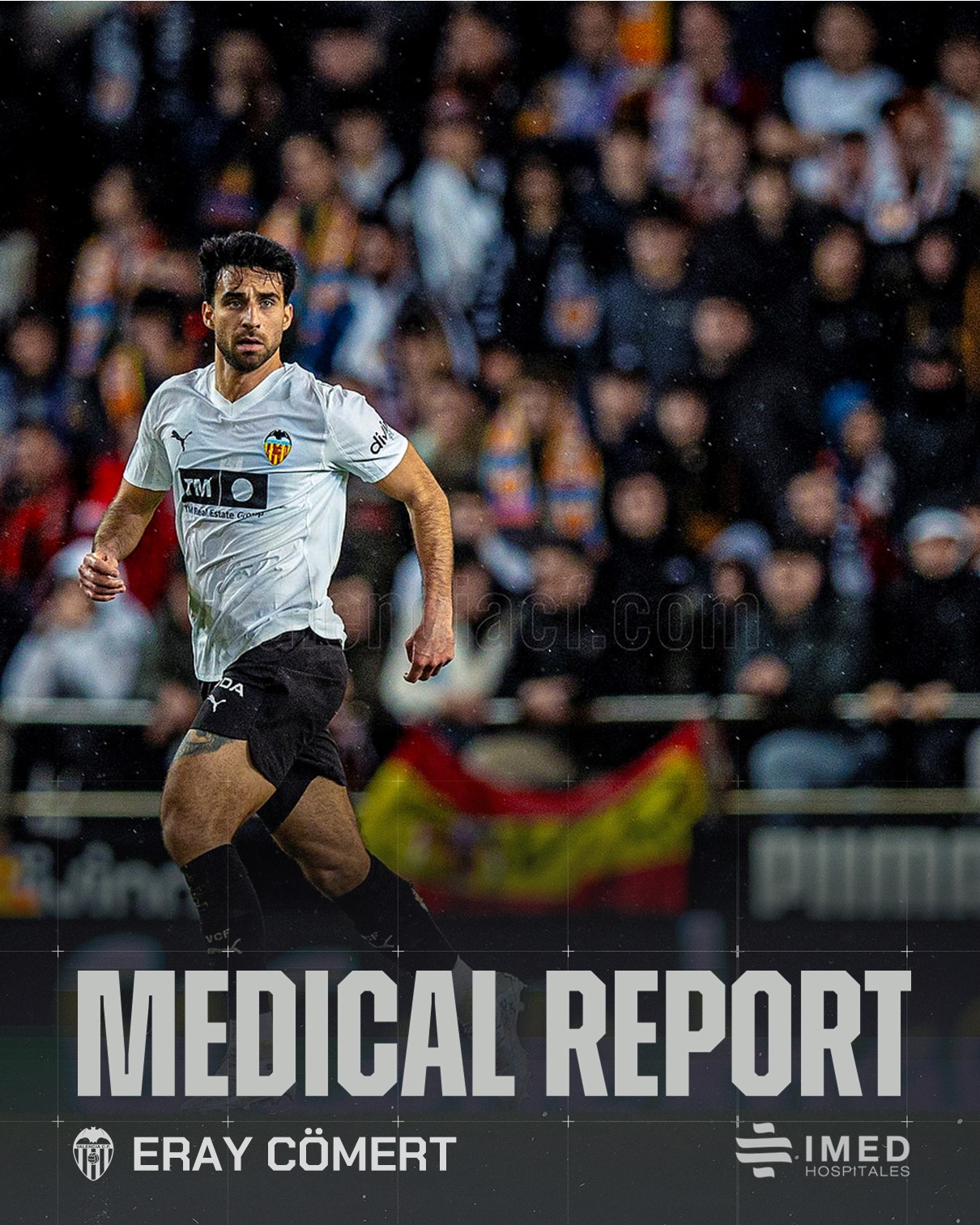 Following the tests carried out, Valencia CF player Eray Cömert is suffering from an abdominal muscle injury sustained during last Saturday’s match against Elche CF.