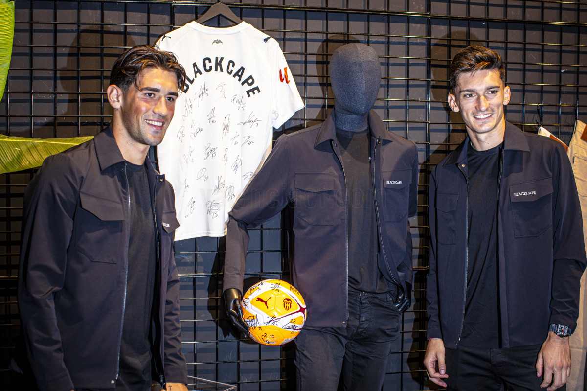 Los jugadores del Valencia CF, Pepelu y Jesús Vázquez, han visitado la tienda oficial de nuestro Official Partner -Blackcape-, evento en el que han lucido el nuevo diseño de la colección para esta temporada. A este acto también ha acudido el director general del Club, Javier Solís.