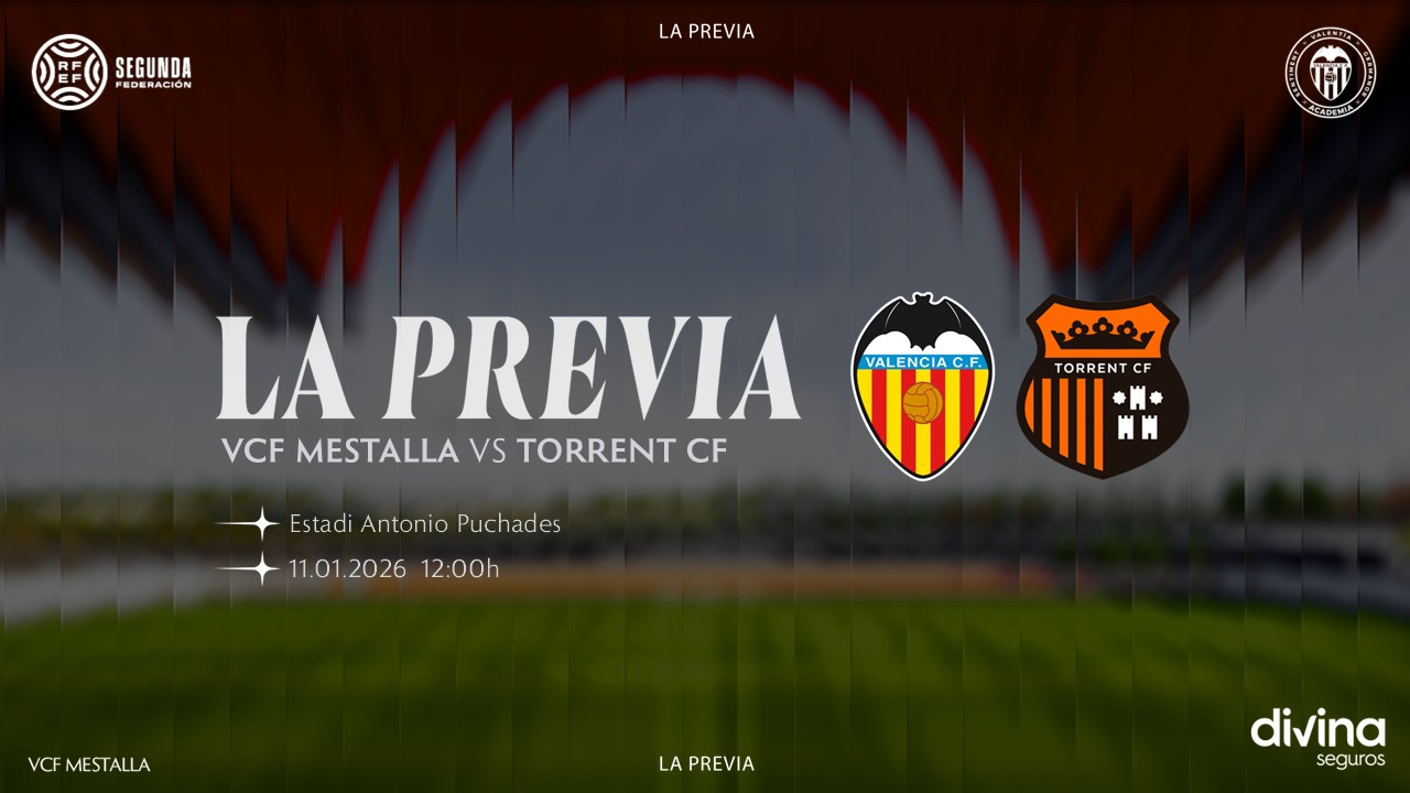 El VCF Mestalla afronta este fin de semana su primer partido en casa de 2026 tras dos encuentros seguidos como visitante. El filial valencianista busca su primera victoria del año en la primera jornada de la segunda vuelta ante un Torrent CF muy necesitado de puntos. Este duelo de proximidad, correspondiente a la Jornada 18 de Segunda Federación Grupo 3, está previsto para el domingo a las 12:00 horas (en directo por VCF Media Radio, App y web VCF) en el Estadi Antonio Puchades.