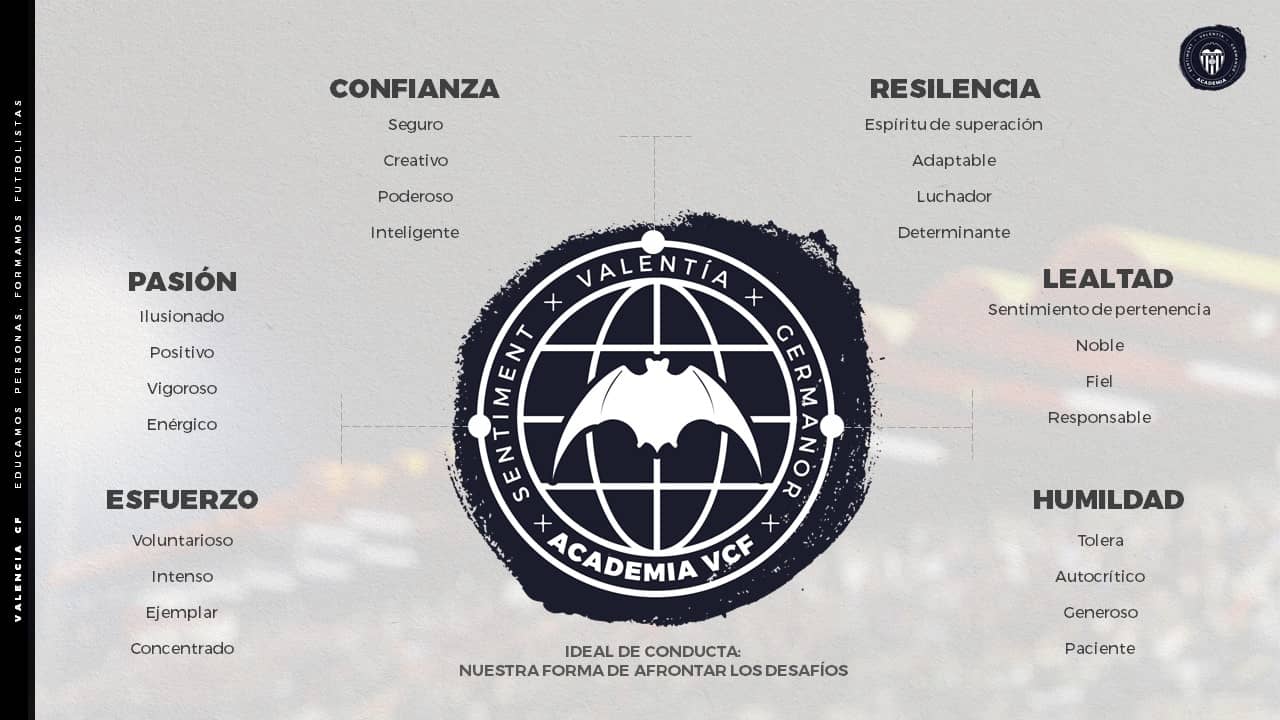Acompañar a los jugadores dentro y fuera del terreno de juego. A los jugadores y los familiares, que son parte esencial en el proceso formativo de los niños que forman parte de la Academia del Valencia CF, especialmente entre los más pequeños del Fútbol 8.