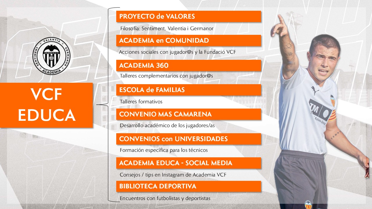 El programa de acciones sociales #AcademiaEnComunidad en colaboración con la Fundació VCF y el programa de talleres #Academia360, la Biblioteca Deportiva forman parte también de VCF Educa.